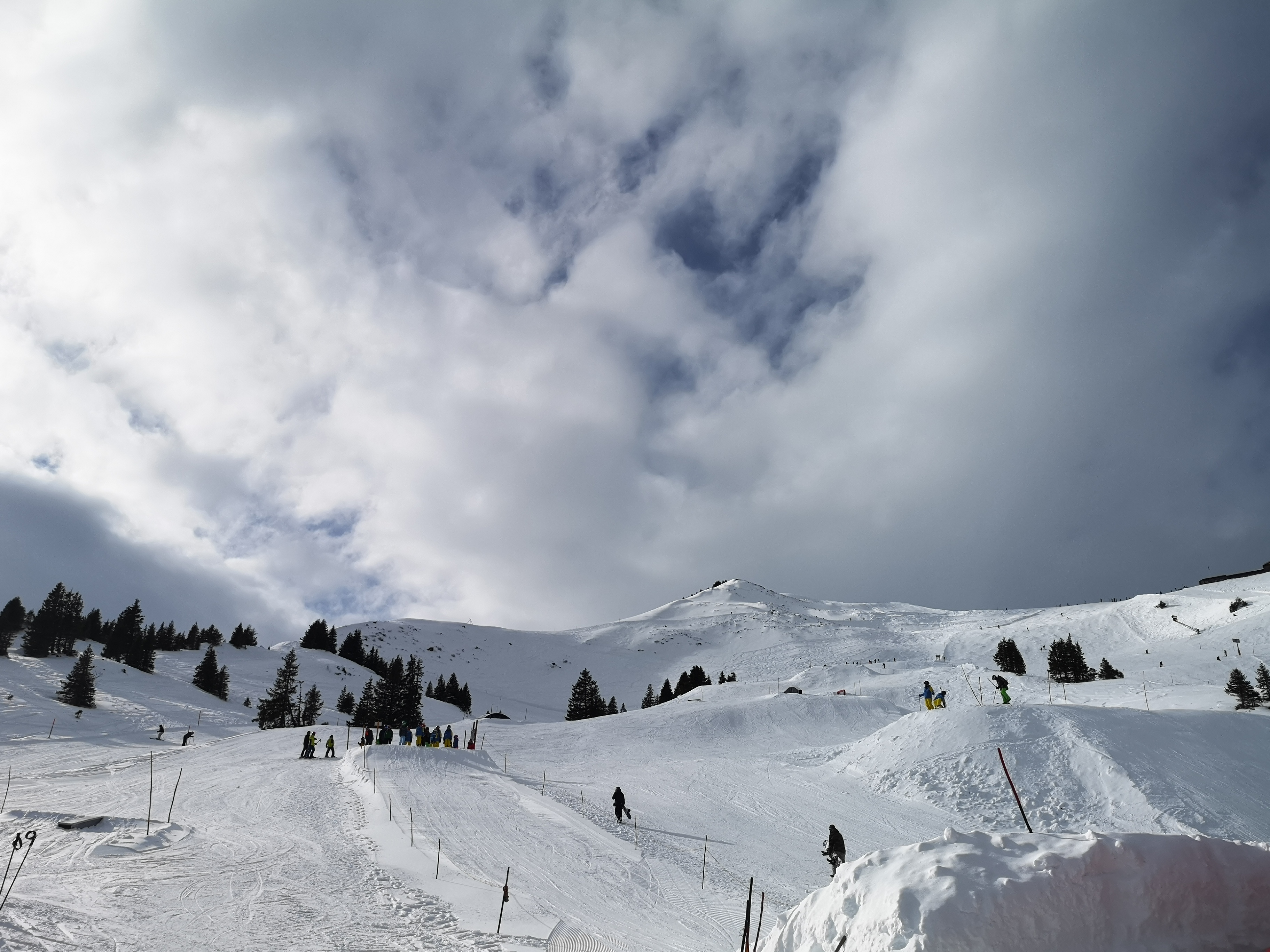 Im Skigebiet wurde dann im Laufe des Nachmittags eine Piste nach der anderen geöffnet, nachdem die Lawinen abgesprengt worden waren und die meisten von uns fuhren bis zum Liftbetriebsende.