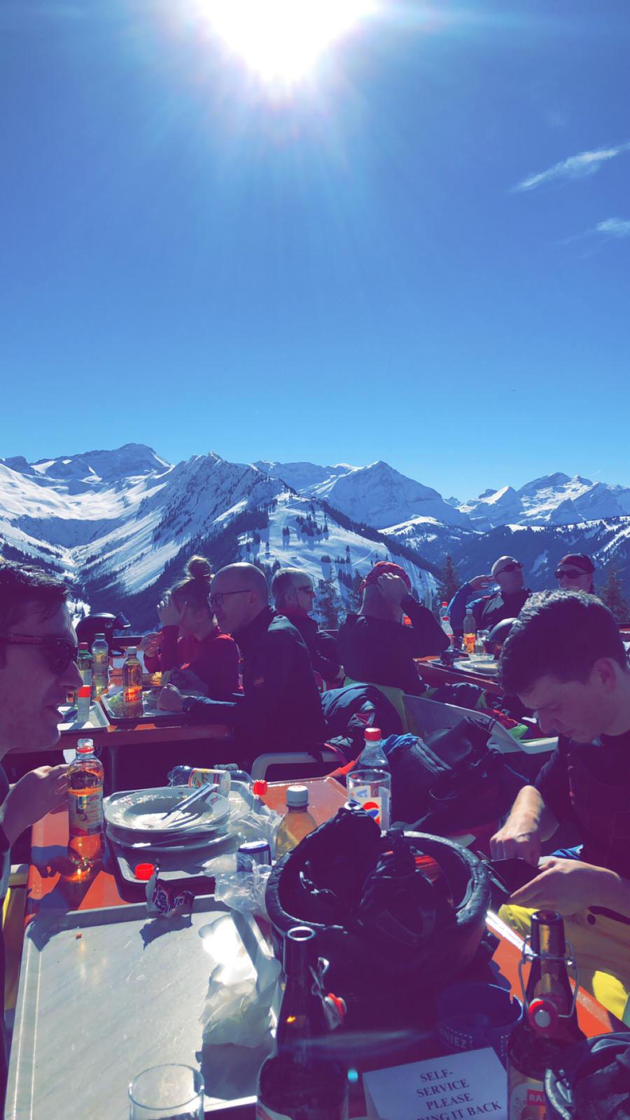 An 2 Skitagen konnten die Sikfreunde dann das Skigebiet rund um Gstaad entdecken und bei strahlendem Sonnenschein weiter an ihrer Technik feilen. Vormittags fanden Skikurse für die Kinder und Jugendliche statt und nach einem ausgiebigen gemeinsamen Mittagessen bildeten sich nachmittags die Gruppen neu, um das Skigebiet auf eigene Faust weiter zu erkunden. Trotz des traumhaften Wetters waren die Wartezeiten an den Liften überraschend kurz und die Pisten besonders in den Morgenstunden in Bestzustand – wirklich 2 perfekte Skitage für alle kleinen und großen Ski-Freunde.